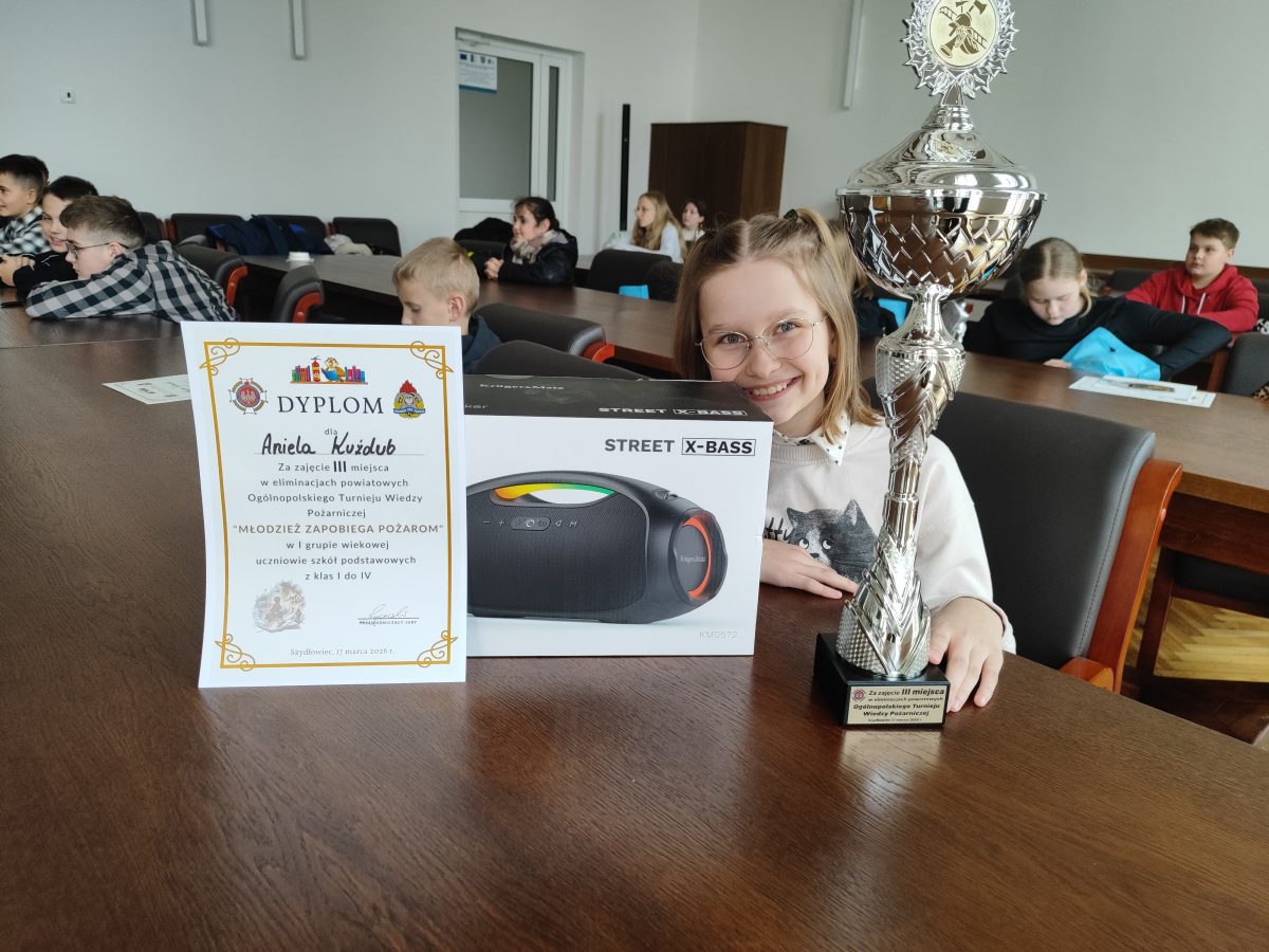 Aniela wygrała głośnik, otrzymała dyplom, statuetkę, kubek i odblaski. Pozostali uczniowie